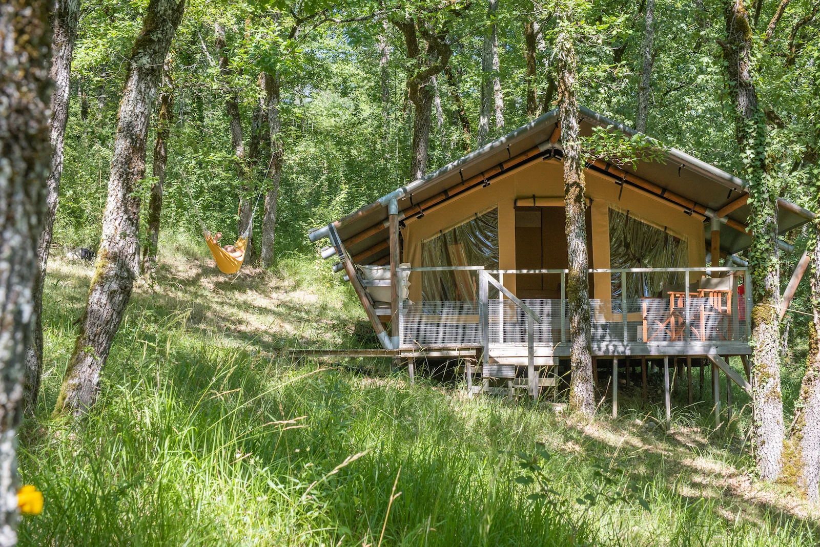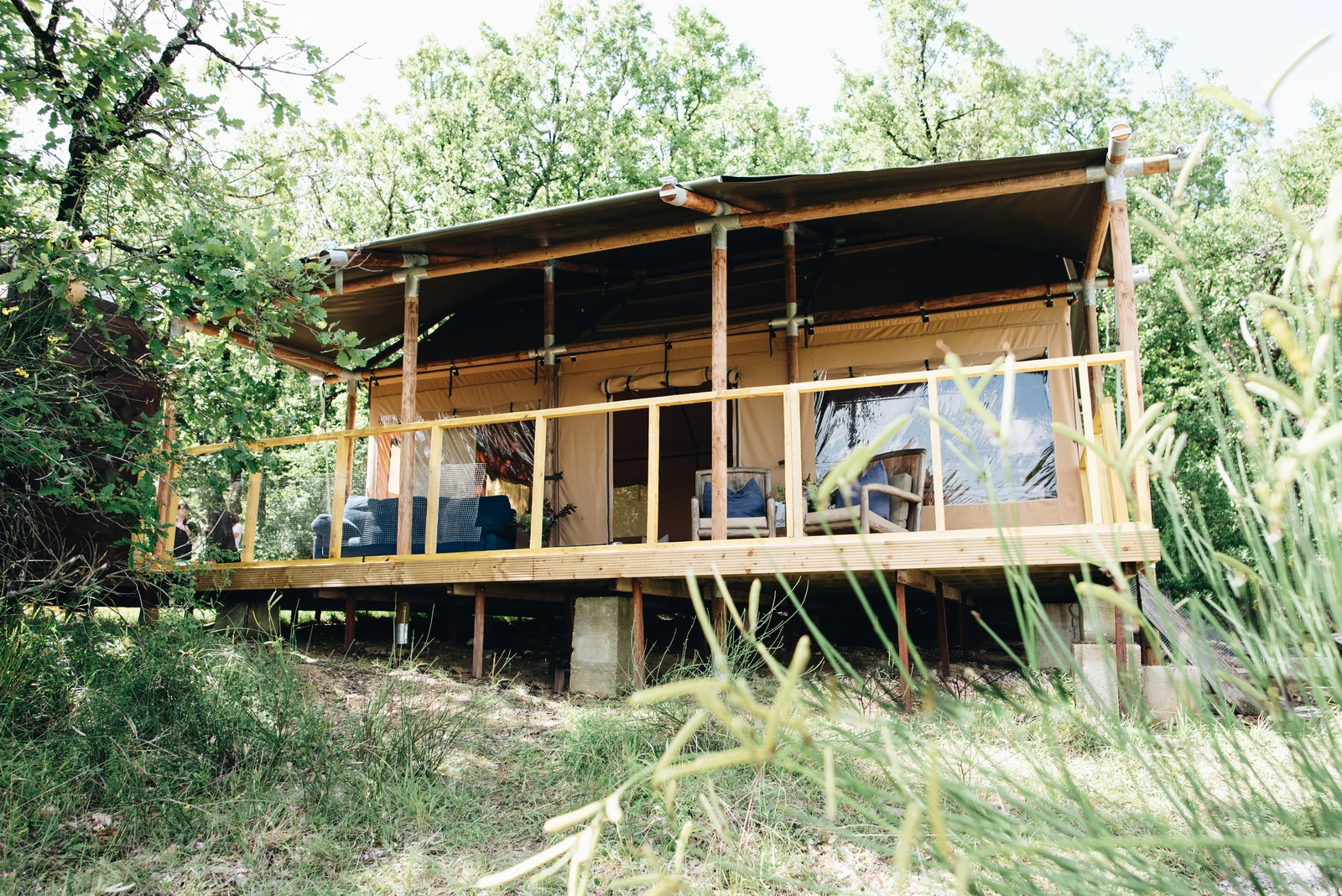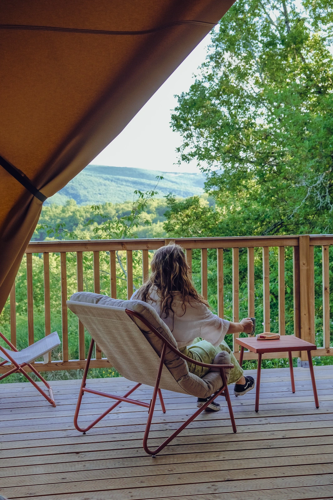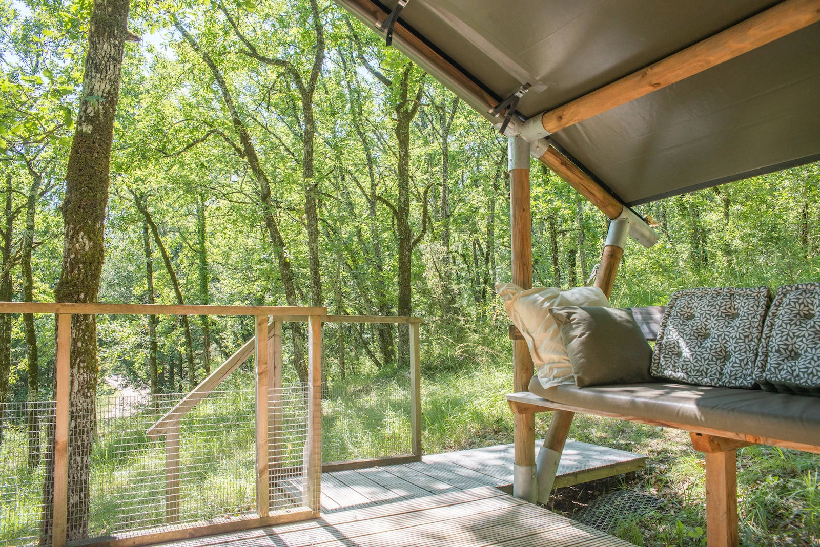 Nuit sous la toile, frissons et aventure garantis ! Chaque emplacement a été pensé pour que vous puissiez bénéficier d’une vue splendide donnant sur la nature, tout en gardant un cadre intimiste dans une atmosphère paisible. Sur une plateforme en bois sur pilotis, chaque lodge du domaine inspire confort, détente et exclusivité. Profitez de votre terrasse privative et ombragée pour chiller, lire un livre, vous ressourcer.