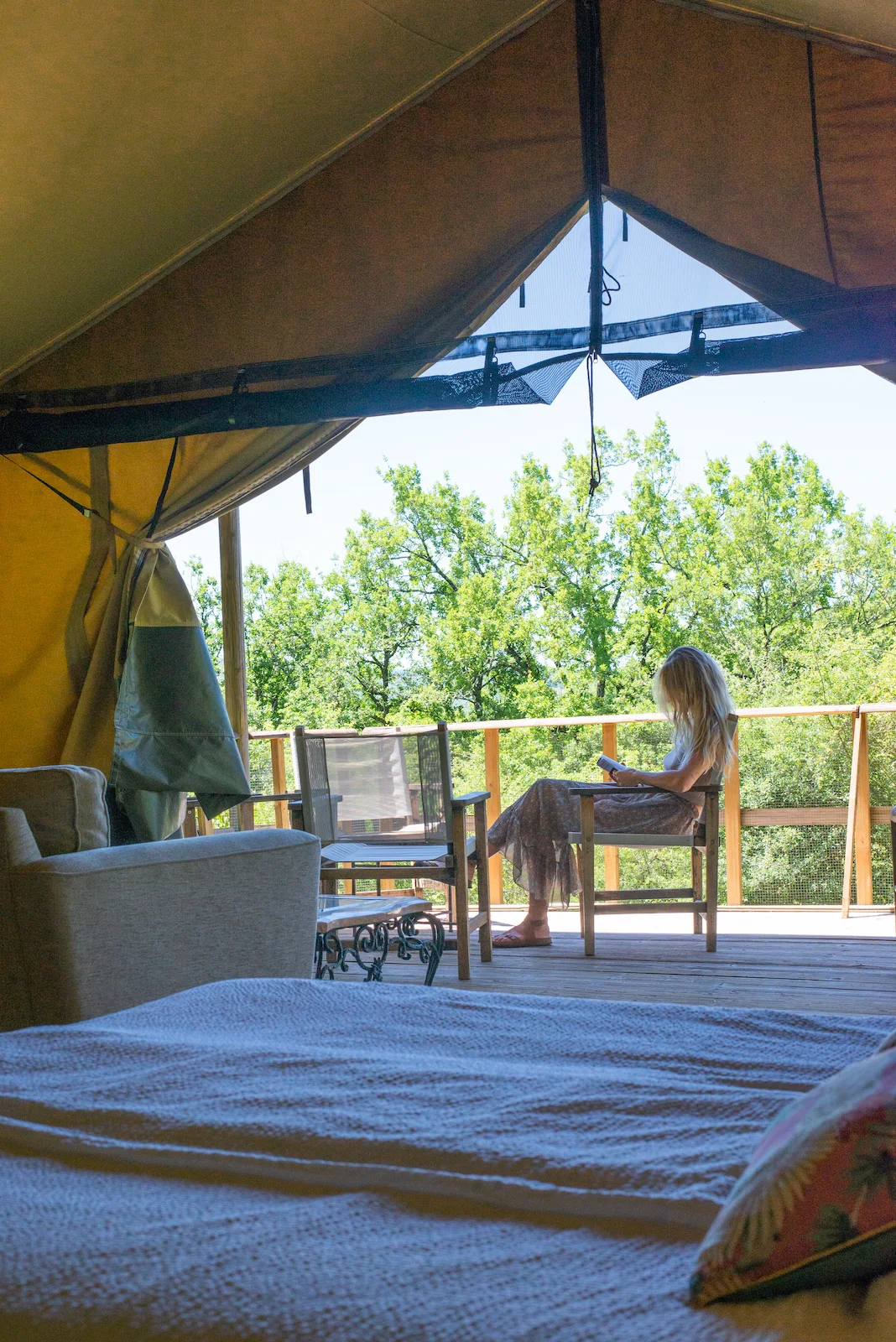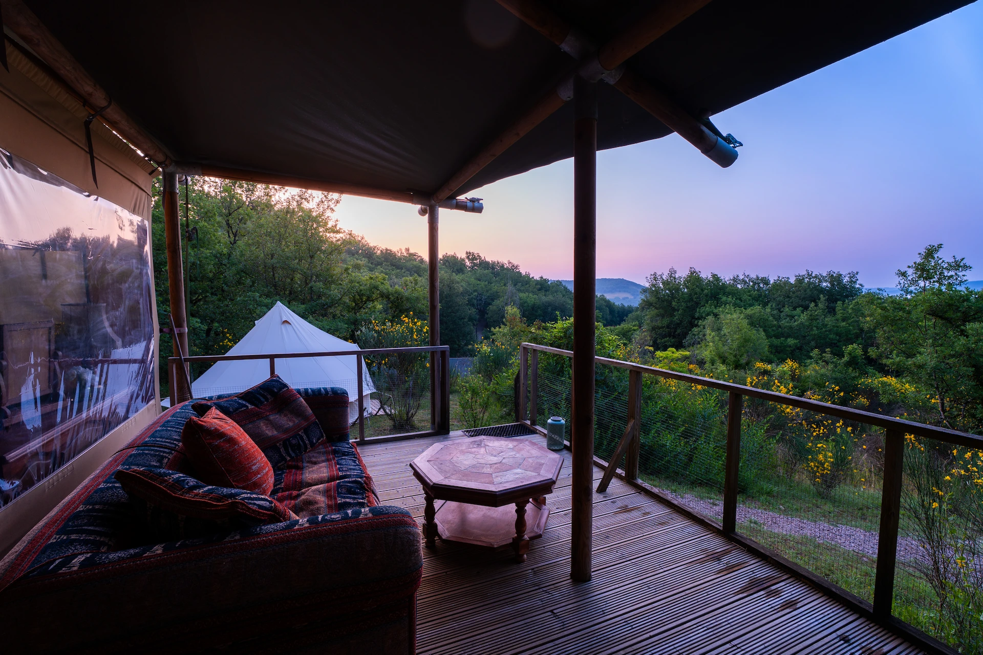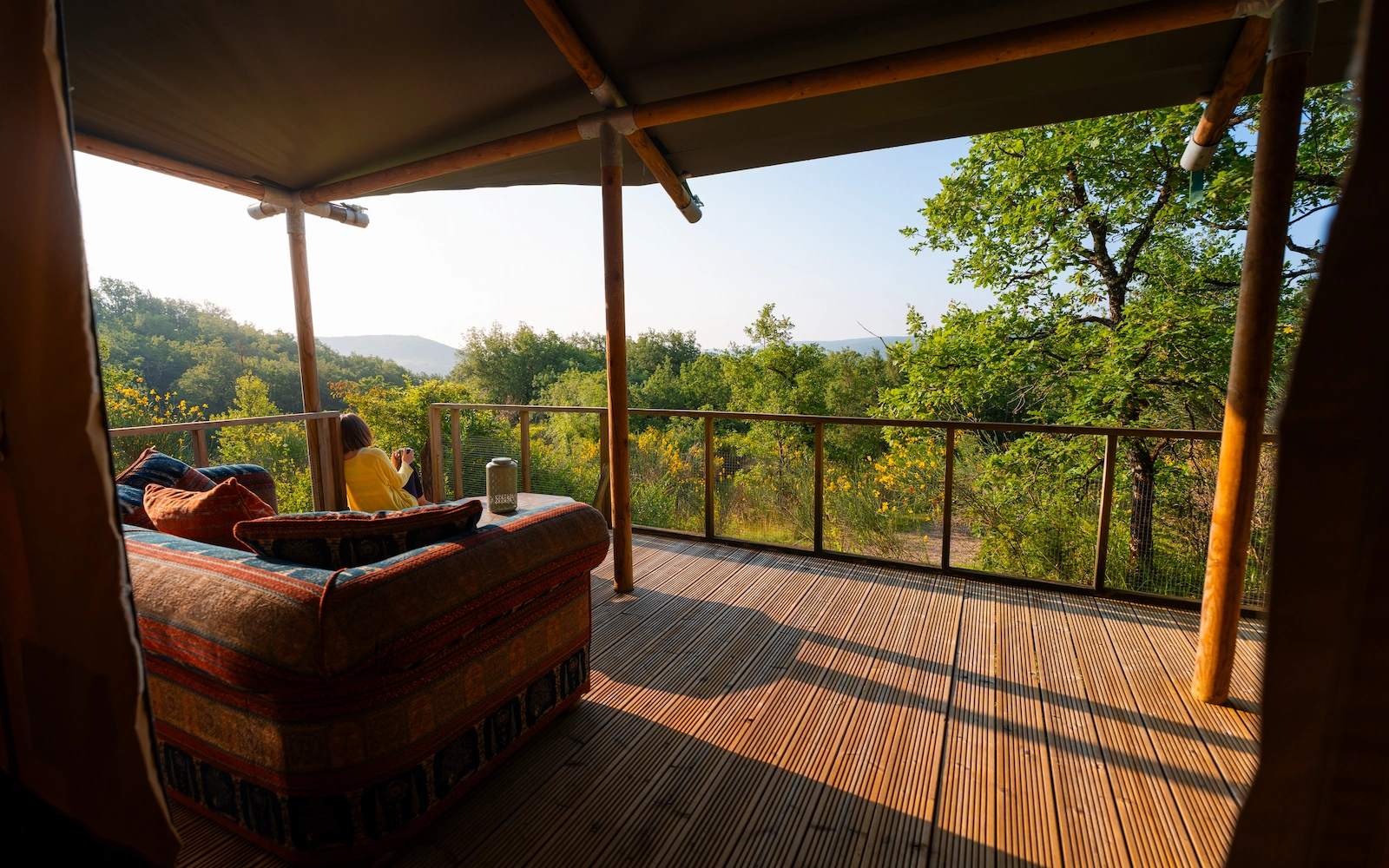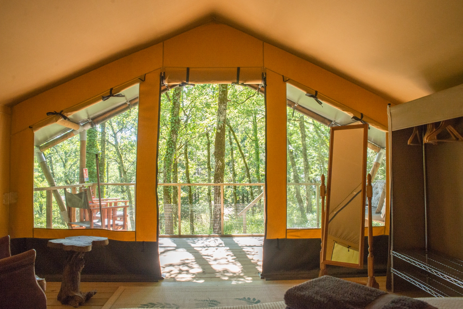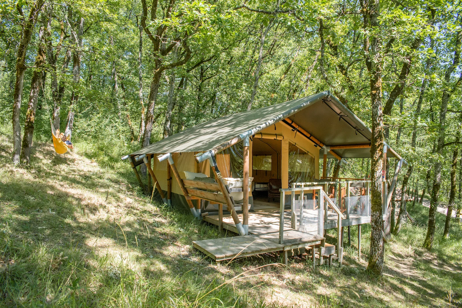 Nuit sous la toile, frissons et aventure garantis ! Chaque emplacement a été pensé pour que vous puissiez bénéficier d’une vue splendide donnant sur la nature, tout en gardant un cadre intimiste dans une atmosphère paisible. Sur une plateforme en bois sur pilotis, chaque lodge du domaine inspire confort, détente et exclusivité. Profitez de votre terrasse privative et ombragée pour chiller, lire un livre, vous ressourcer.